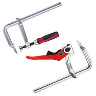 Tameson führt ein breites Sortiment an Schraubzwingen mit unterschiedlichen Spannfuttergrößen und Backenlängen. Sowohl die kleineren als auch die größeren Klebeklammern werden mit einer manuellen Schraubzwinge geliefert, die gedreht wird, um ein Objekt zu befestigen. Tameson hat auch eine Auswahl an Schnellspann-Schraubzwingen mit einem Hebelspannsystem, die ideal für die Verwendung mit einer Hand sind und schnell und präzise auf die richtige Spanngröße eingestellt werden können. Weitere verfügbare Typen sind kompakte Schraubzwingen, die sich ideal zum Halten von Objekten in sehr engen Räumen eignen.