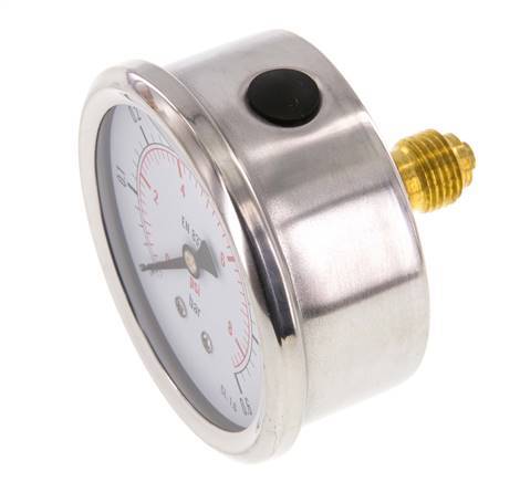 0..0.6 Bar (0..9 psi) Glyzerin-Manometer Rückseite Edelstahl/Messing 63 mm Klasse 1.6
