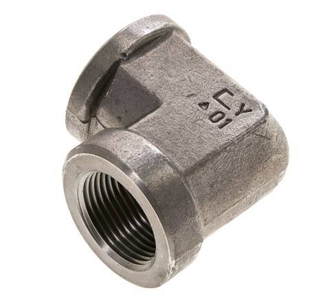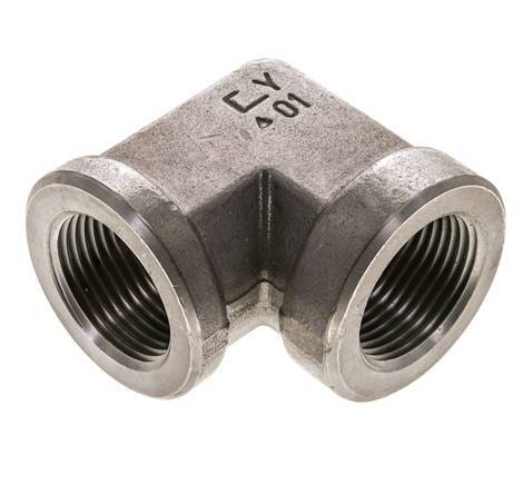 Dieses Winkelstück ist mit einem abgewinkelten Innengewinde ausgestattet. Anschluss 1 hat ein 1-Zoll-Innengewinde (NPT). Anschluss 2 hat ein 1-Zoll-Innengewinde (NPT). Es handelt sich um eine Winkelverschraubung. Er ist aus rostfreiem Stahl (1.4401) gefertigt. Bei 20 °C (68 °F) kann es einen maximalen Druck von 140 bar (2031 psi) bewältigen. Der Eingang und der Ausgang befinden sich in einem 90°-Winkel.