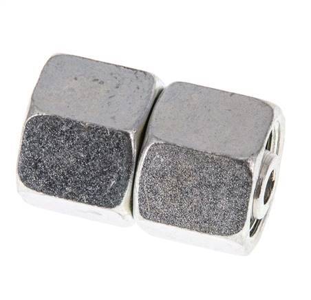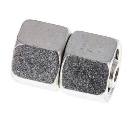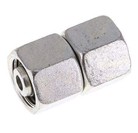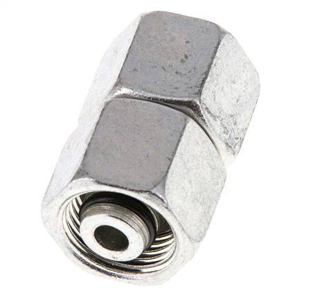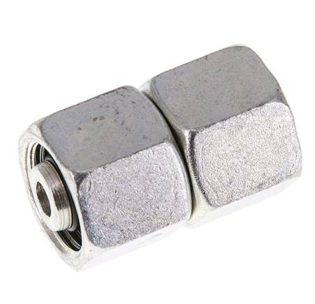 Diese gerade Verschraubung aus verzinktem Stahl ist mit einem drehbaren Rohranschluss und einem Gewindeanschluss ausgestattet. Anschluss 1 ist mit einem 10-mm-Drehrohranschluss versehen. Anschluss 2 verfügt über einen 10 mm-Drehrohranschluss. Er hat einen O-Ring und einen Dichtungskonus zur Abdichtung. Der Dichtungswerkstoff ist NBR. Der maximale Druck beträgt 630 bar (9135 psi). Die Armatur ist für Temperaturen von -35 bis 100 °C (-31 bis 212 °F) geeignet. Es wird nach DIN EN ISO 8434-1 (DIN 2353) hergestellt.