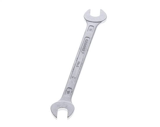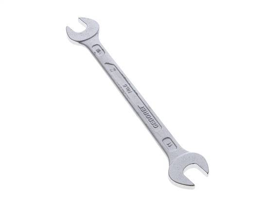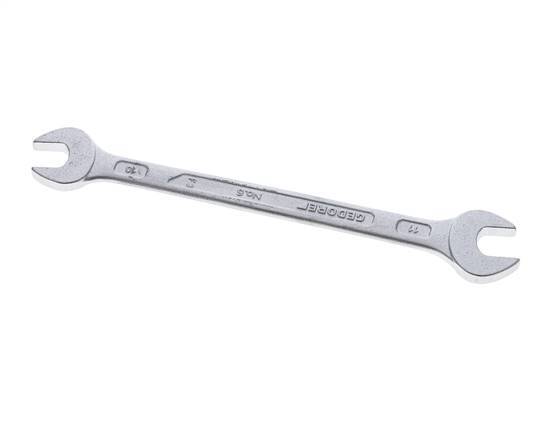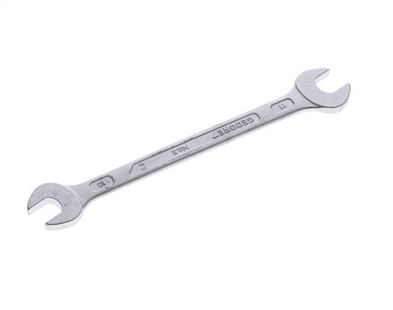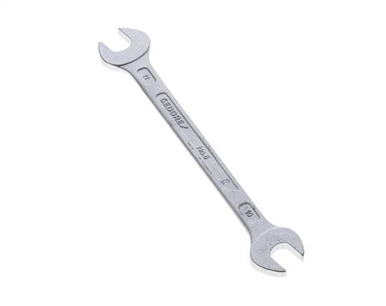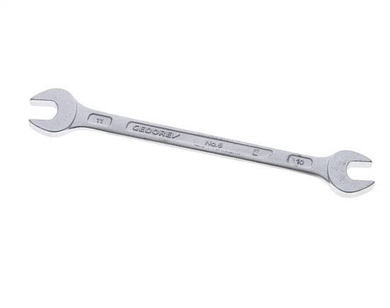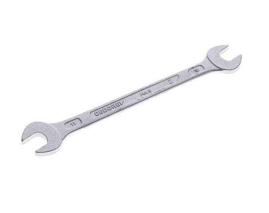 Dies ist ein hochwertiger Gedore Doppelmaulschlüssel 10x11 mm für industrielle Anwendungen. Der Schlüssel ist aus Chrom-Vanadium-Stahl 31CrV3 gefertigt, gemäß DIN 3110, ISO 3318, ISO 1085, ISO 10102.