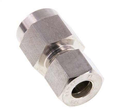 Diese gerade Verschraubung aus Edelstahl 1.4571 ist für die Verwendung mit Manometern ausgelegt. Anschluss 1 ist ein 12-mm-Kompressionsring mit einer M20x1,5-Überwurfmutter. Anschluss 2 hat ein Innengewinde G 1/2 Zoll. Der maximale Druck beträgt 400 bar (5800 psi). Die Armatur ist für Temperaturen von -60 bis 400 °C (-76 bis 752 °F) geeignet. Es wird nach DIN EN ISO 8434-1 (DIN 2353) hergestellt.