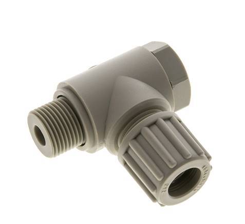 Diese pp-Winkelverschraubung ist mit einem Außengewindeanschluss, einem Druckringanschluss und mit einer Hohlschraube ausgeführt. Anschluss 1 ist ein