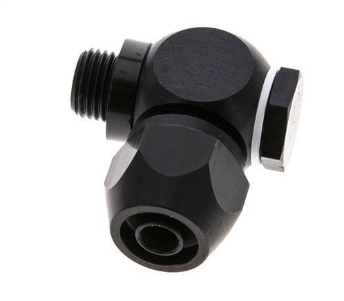 Dieses Aluminium-Winkelstück zum Einschrauben ist mit einem Anschluss mit Außengewinde und einem Anschluss mit Kompressionsring ausgestattet. Anschluss 1 ist ein 12x9 mm Kompressionsring. Anschluss 2 hat ein Außengewinde G 1/4 Zoll. Das Dichtungsmaterial ist PVC und PA. Der Betriebsdruckbereich beträgt -0,95 bis 10 bar (-14 bis 145 psi) und ist somit für Vakuum geeignet. Die Armatur ist für Temperaturen von -10 bis 60 °C (14 bis 140 °F) geeignet.