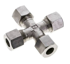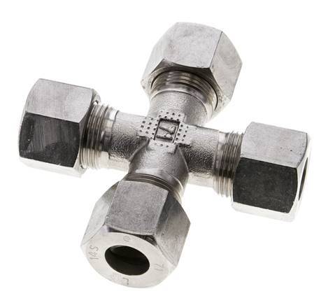 Diese Kreuzverschraubung ist mit vier kreuzförmig angeordneten Schneidringanschlüssen ausgeführt. Anschluss 1 ist ein 14 mm Schneidring. Anschluss 2 ist ein 14 mm Schneidring. Anschluss 3 ist ein 14 mm Schneidring. Anschluss 4 ist ein 14 mm Schneidring. Er ist aus rostfreiem Stahl (1.4401) gefertigt. Es ist für Medien in einem Temperaturbereich von -60 °C bis 400 °C (-76 °F bis 752 °F) geeignet. Bei 20 °C (68 °F) kann es einen maximalen Druck von 630 bar (9138 psi) bewältigen. Nach der DIN 2353 hat er die Belastungsklasse S (schwer). Es wird nach der DIN EN ISO 8434-1 (DIN 2353) hergestellt.
