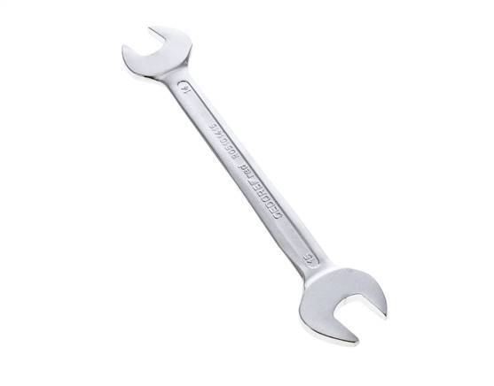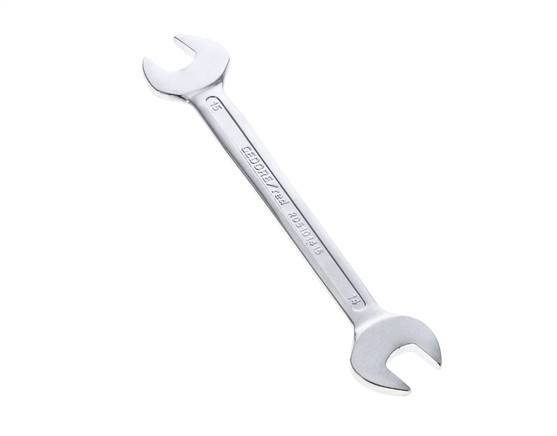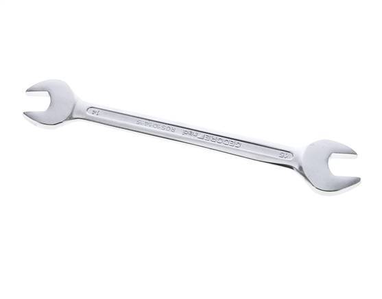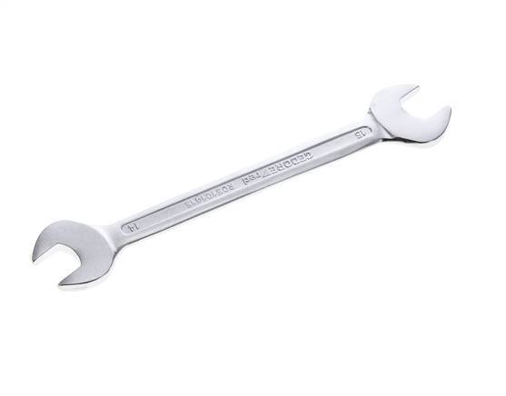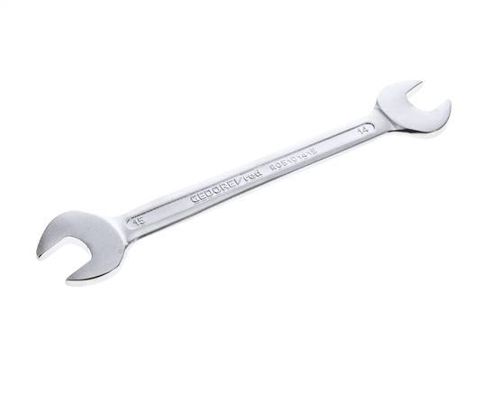 Dies ist ein Gedore Red Doppelmaulschlüssel 14x15 mm für den täglichen Gebrauch. Der Schlüssel ist aus Chrom-Vanadium-Stahl gefertigt und entspricht den Normen DIN 3110, ISO 3318, ISO 1085, ISO 10102.