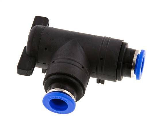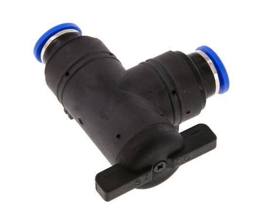 Es handelt sich um ein vernickeltes 2-Wege-Kugelventil aus Messing/pa66/pps zum Öffnen/Schließen des Luftstroms. Er hat beidseitig 10 mm Steckanschlüsse. Er verfügt über NBR-Dichtungen, die ihn für Anwendungen in einem Temperaturbereich von -20 bis 80 °C (-4 bis 176 °F) geeignet machen. Der Betriebsdruckbereich beträgt -0,95 bis 20 bar (-14 bis 290 psi) und ist somit für Vakuum geeignet. Verwenden Sie den Vierteldrehgriff zum Öffnen oder Schließen des Ventils.