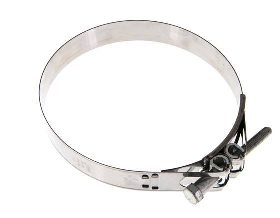Norma Schlauchschelle mit einem verstellbaren Bereich von 200 - 213 mm. Es hat eine Bandbreite von 30 mm. Das Gehäuse besteht aus rostfreiem Stahl 430 und hat eine T-Bolzen-Konstruktion, die durch Verdrehen des Bolzens angezogen und gelöst wird, sowie eine Drahtkonstruktion, die mit der Schraube angezogen und gelöst wird.
