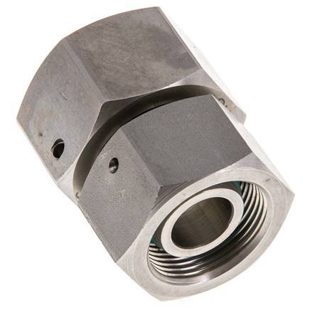 Diese gerade Einschraubverbindung aus Edelstahl 1.4571 ist mit einem schwenkbaren Rohranschluss und einem Gewindeanschluss ausgeführt. Anschluss 1 ist mit einem 25-mm-Drehrohranschluss versehen. Anschluss 2 ist mit einem 30-mm-Drehrohranschluss versehen. Er hat einen O-Ring und einen Dichtungskonus zur Abdichtung. Der Dichtungswerkstoff ist FKM. Der maximale Druck beträgt 400 bar (5800 psi). Die Armatur ist für Temperaturen von -20 bis 200 °C (-4 bis 392 °F) geeignet. Es wird nach DIN EN ISO 8434-1 (DIN 2353) hergestellt.