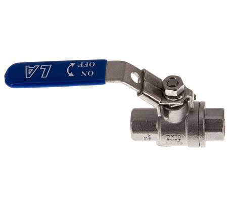 2-Wege-Kugelhahn PN 63 mit G 3/8-Zoll-Anschlüssen und einem Griff für die Ein- und Ausschaltung des Durchflusses. Die Ventilbohrung beträgt 12,5 mm und der maximale Druck liegt bei 63 bar oder 914 psi. Geeignet für Wasser, Dampf, Öl, Druckluft, Kraftstoffe, Lösungsmittel und aggressive Medien. Geeignet für Temperaturen von -20 bis 200 °C (-4 bis 392 °F). Gehäuse und Kugel aus Edelstahl und PTFE-Dichtungen.