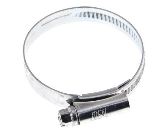 Schlauchschelle aus verzinktem Stahl mit einem Verstellbereich von 35 - 50 mm und einer Breite von 9 mm. Es ist von der Marke Ideal.