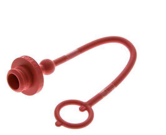 Staubschutzkappe für 35 mm Hydraulikkupplungsmuffe. Die Kappe schützt die Armatur vor Staub und Stößen, was die Gefahr von Leckagen verringert und die Lebensdauer verlängert. Es ist aus Kunststoff gefertigt.