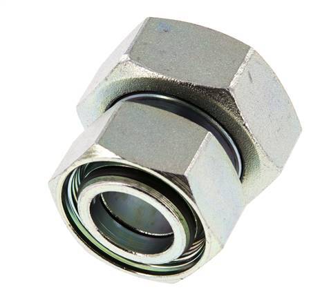 Diese gerade Verschraubung aus verzinktem Stahl ist mit einem drehbaren Rohranschluss und einem Gewindeanschluss ausgestattet. Anschluss 1 hat einen 35-mm-Drehrohranschluss. Anschluss 2 hat einen 42-mm-Drehrohranschluss. Er hat einen O-Ring und einen Dichtungskonus zur Abdichtung. Der Dichtungswerkstoff ist NBR. Der maximale Druck beträgt 160 bar (2320 psi). Die Armatur ist für Temperaturen von -35 bis 100 °C (-31 bis 212 °F) geeignet. Es wird nach DIN EN ISO 8434-1 (DIN 2353) hergestellt.