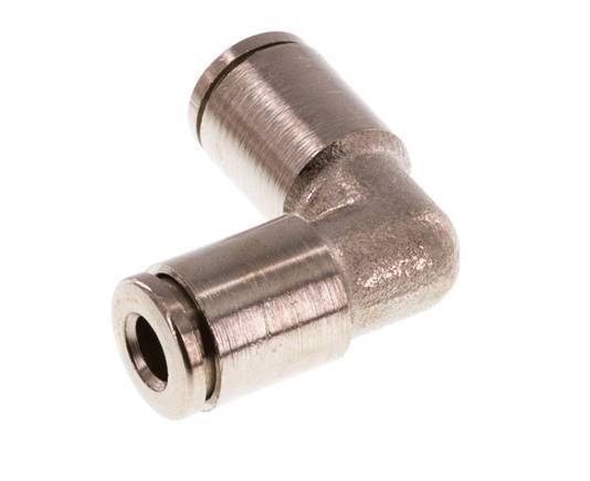Es handelt sich um eine Steckverschraubung mit 2 Anschlüssen und einem Ellbogen. Steckanschlüsse sind ideal, um schnelle und zuverlässige Verbindungen für Pneumatikschläuche herzustellen. Beide Steckanschlüsse haben eine Größe von 4 mm. Das Gehäuse ist aus Messing gefertigt. Die Anschlussstutzen sind aus vernickeltem Messing gefertigt. Der Dichtungswerkstoff ist FKM. Der Betriebsdruckbereich beträgt -0,98 bis 16 bar (-14 bis 232 psi) und ist somit für Vakuum geeignet. Die Armatur ist für Temperaturen von -20 bis 150 °C (-4 bis 302 °F) geeignet. Die Steckverschraubung lässt sich leicht installieren, indem man den Pneumatikschlauch bis zum Anschlag gegen den Entriegelungsring der Verschraubung drückt, und die innenliegende Kralle sichert sie. Er lässt sich leicht demontieren, indem der Entriegelungsring nach innen in Richtung des Anschlusses gedrückt und der Schlauch zurückgezogen wird.