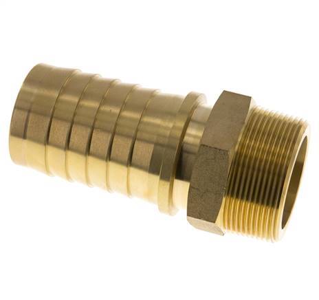 Diese Messing-Schlauchverschraubung ist mit einer Schlauchsäule und einem Außengewinde ausgeführt. Anschluss 1 ist eine Schlauchsäule, die für einen Schlauch mit einem Innen-/Außendurchmesser von 50x68 mm ausgelegt ist. Anschluss 2 hat ein R 2-Zoll-Außengewinde. Der maximale Druck beträgt 18 bar (261 psi). Die Armatur ist geeignet für Sattdampf max. +210 °C (410 °F), Wasser bis zu +120 °C (248 °F). Er ist nach der DIN EN 14423 gefertigt.