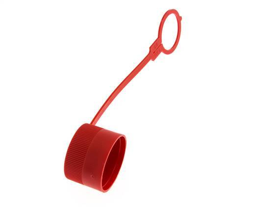 Staubschutzkappe für 55 mm Hydraulikkupplungsmuffe. Die Kappe schützt die Armatur vor Staub und Stößen, wodurch die Gefahr von Leckagen verringert und die Lebensdauer erhöht wird. Er ist aus Kunststoff gefertigt.