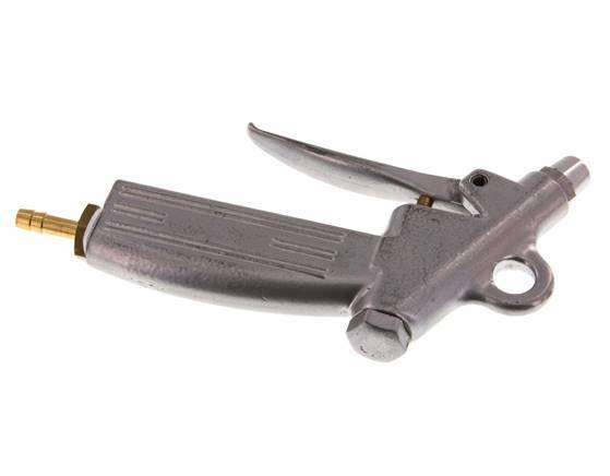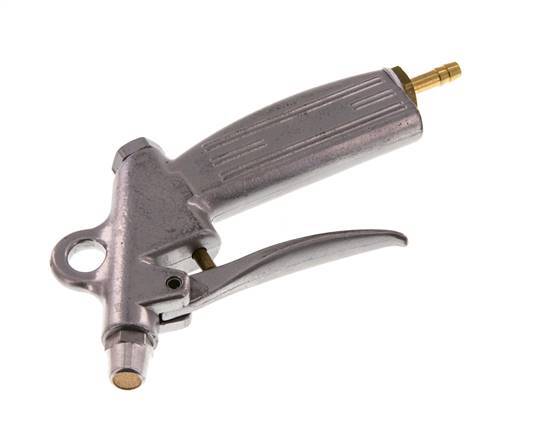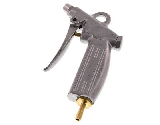Es handelt sich um eine Aluminium-Druckluftpistole mit einem 6-mm-Schlauchanschluß. Die Blaspistole ist mit einer Aluminiumdüse mit einem Schalldämpfer aus gesintertem Messing ausgestattet. Die Düse wird in eine Auslassöffnung mit Innengewinde M12x1,25 geschraubt.