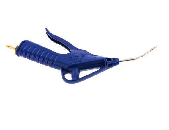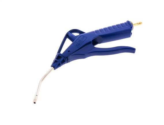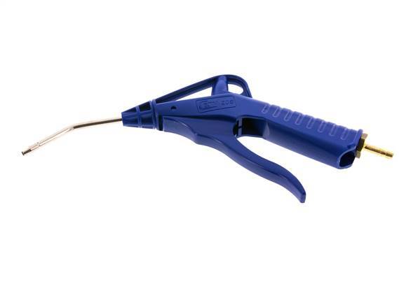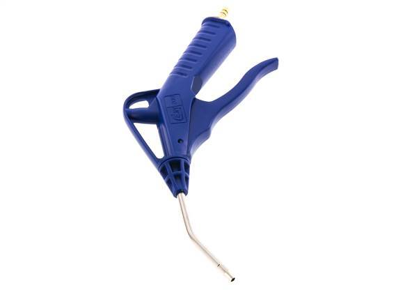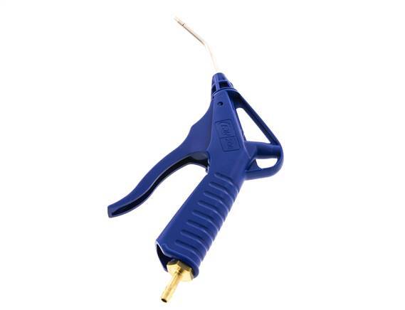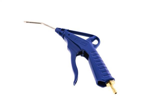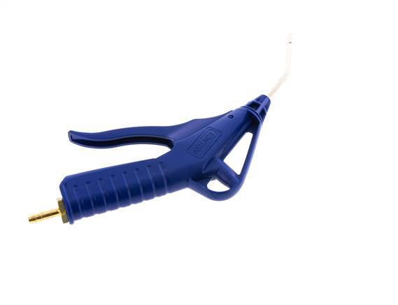 Druckluftblaspistole mit einstellbarem Durchfluss aus POM mit einem 6 mm Schlauchanschluss. Die Blaspistole ist mit einer Messing-Verlängerungsrohrdüse ausgestattet. Geeignet für einen maximalen Betriebsdruck von 16 bar (232 psi) und Temperaturen von -20 bis 60 °C (-4 bis 140 °F). Ausgestattet mit einer NBR-Dichtung.