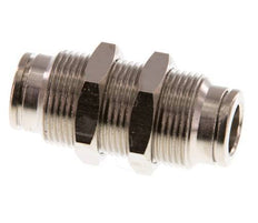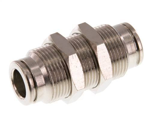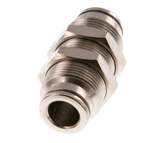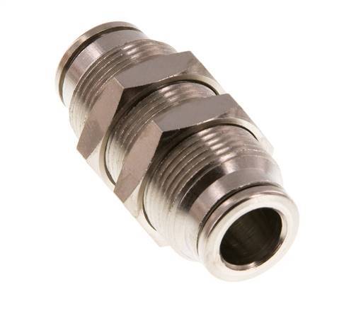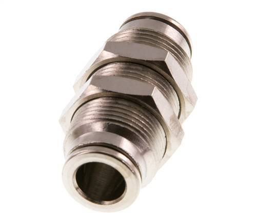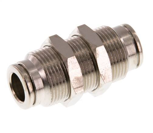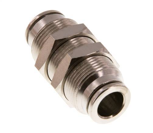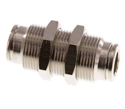Dies ist eine gerade Steckverbindung mit 2 Anschlüssen. Steckanschlüsse sind ideal, um schnelle und zuverlässige Verbindungen für Pneumatikschläuche herzustellen. Beide Steckanschlüsse haben eine Größe von 8 mm. Das Gehäuse ist aus Messing gefertigt. Die Anschlussstutzen sind aus vernickeltem Messing gefertigt. Der Dichtungswerkstoff ist FKM. Der Betriebsdruckbereich beträgt -0,98 bis 16 bar (-14 bis 232 psi) und ist somit für Vakuum geeignet. Die Armatur ist für Temperaturen von -20 bis 150 °C (-4 bis 302 °F) geeignet. Das Schottgewinde hat ein Gewinde M 16x1,16 mit einer Länge von 13 mm. Die Steckverschraubung lässt sich leicht installieren, indem man den Pneumatikschlauch bis zum Anschlag gegen den Entriegelungsring der Verschraubung drückt, und die innenliegende Kralle sichert sie. Er lässt sich leicht demontieren, indem der Entriegelungsring nach innen in Richtung des Anschlusses gedrückt und der Schlauch zurückgezogen wird.