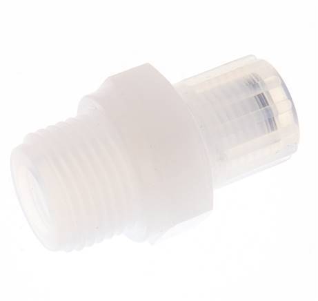 Dieser pfa-Einschraubanschluss ist mit einem Außengewinde und einem Schneidringanschluss ausgestattet. Anschluss 1 ist ein 8x6 mm Schneidring. Anschluss 2 hat ein Außengewinde G 1/2 Zoll. Der maximale Druck beträgt 10 bar (145 psi). Die Armatur ist für Temperaturen von -40 bis 180 °C (-40 bis 356 °F) geeignet.