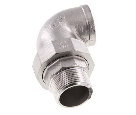 90 Grad abgewinkelter Verschraubungsstutzen 1 1/2'' Außengewinde R x Innengewinde Rp Edelstahl Flachdichtung PTFE 16bar (224.8psi)