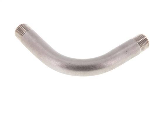 Dieses 90-Grad-Winkelrohr mit Außengewinde wird zur Verbindung von zwei Rohren oder Bauteilen mit Innengewinde verwendet. Es wird in Niederdruckanwendungen bis zu 16 bar (224,8 psi) eingesetzt. Armaturen aus Edelstahl 316 (1.4401) haben eine ausgezeichnete Korrosionsbeständigkeit (besser als Edelstahl 304). Aufgrund des großen Radius am Krümmer gibt es nur einen minimalen Druckverlust. Er ist für Dampf, Wasser und Luft geeignet.
