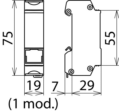 Dehn DEHNpatch Überspannungsschutz v data/m&r, Bemessungsspannung DC 48V, DIN-Schiene 35mm, Datenleitung RJ45, Anschluss 1 RJ45, Grenzfrequenz 250MHz, Impedanz 1Ohm, max Dauerspannung AC 34V, max Dauerspannung DC 48V, max Restspannung 0,19kV, Bemessungslaststrom 1A.