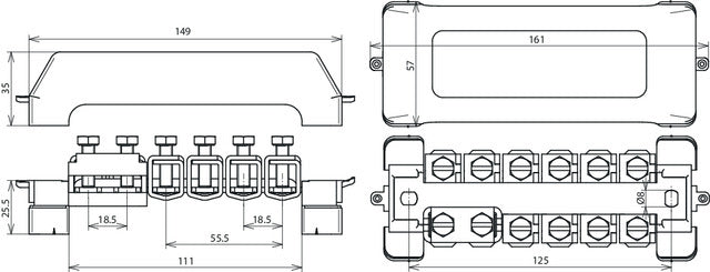 Die Potentialausgleichsschiene entspricht der EN 62561-1, ausgelegt für den Schutz- und Funktionspotentialausgleich nach IEC 60364-4-41/60364-5-54 (DIN VDE 0100-410/540) und für den Blitzschutzpotentialausgleich nach IEC/EN 62305-3. Diese Standardausführung ist nach DIN VDE 0618-1 geprüft, mit einem CE-Zeichen versehen und mit Rastklemmen St/gal Zn ausgestattet. Er wird mit Befestigungsrahmen und einer grauen, halogenfreien Kunststoffabdeckung geliefert, die zur einfachen Identifizierung versiegelt und beschriftet werden kann.