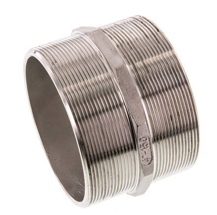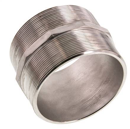 Dieser Doppelnippel aus Edelstahl ist mit einem Außengewinde ausgestattet. Anschluss 1 hat ein Außengewinde G 4 Zoll. Anschluss 2 hat ein Außengewinde G 4 Zoll. Maximaler Druck von 16 bar (232 psi).