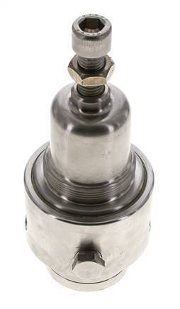 Der Druckregler regelt den Druck kontinuierlich auf ein stabiles Niveau, auch wenn der Eingangsdruck schwankt. Das Niveau kann zwischen 1,0 und 15,0 bar (14 bis 218 psi) eingestellt werden. Dieses Modell hat G 1/4 Zoll Anschlüsse. Die maximale Durchflussmenge beträgt 700 l/min. Es wird empfohlen, einen Filter mit einer maximalen Durchflussrate zu wählen, die 1,5- bis 2-mal höher ist als die maximale Durchflussrate in Ihrem System, um einen übermäßigen Druckabfall zu vermeiden. Beachten Sie außerdem, dass niedrigere Eingangsdrucke die erreichbare maximale Durchflussrate reduzieren können. Stellen Sie daher sicher, dass der Systemdruck für eine optimale Leistung ausreichend ist. Beachten Sie, dass der Druckregler den Ausgangsdruck und nicht die Durchflussmenge regelt. Der Ausgangsdruck kann durch Hochziehen und Drehen des Handrads eingestellt werden.