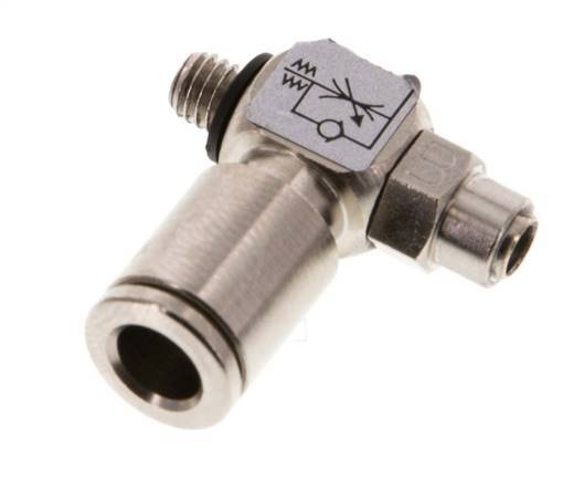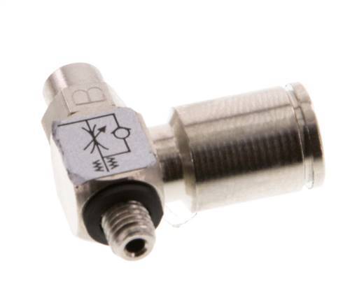 Durchflussregelventil Abgangswinkel 6 mm - M5 Messing Schlitzschraube Banjo