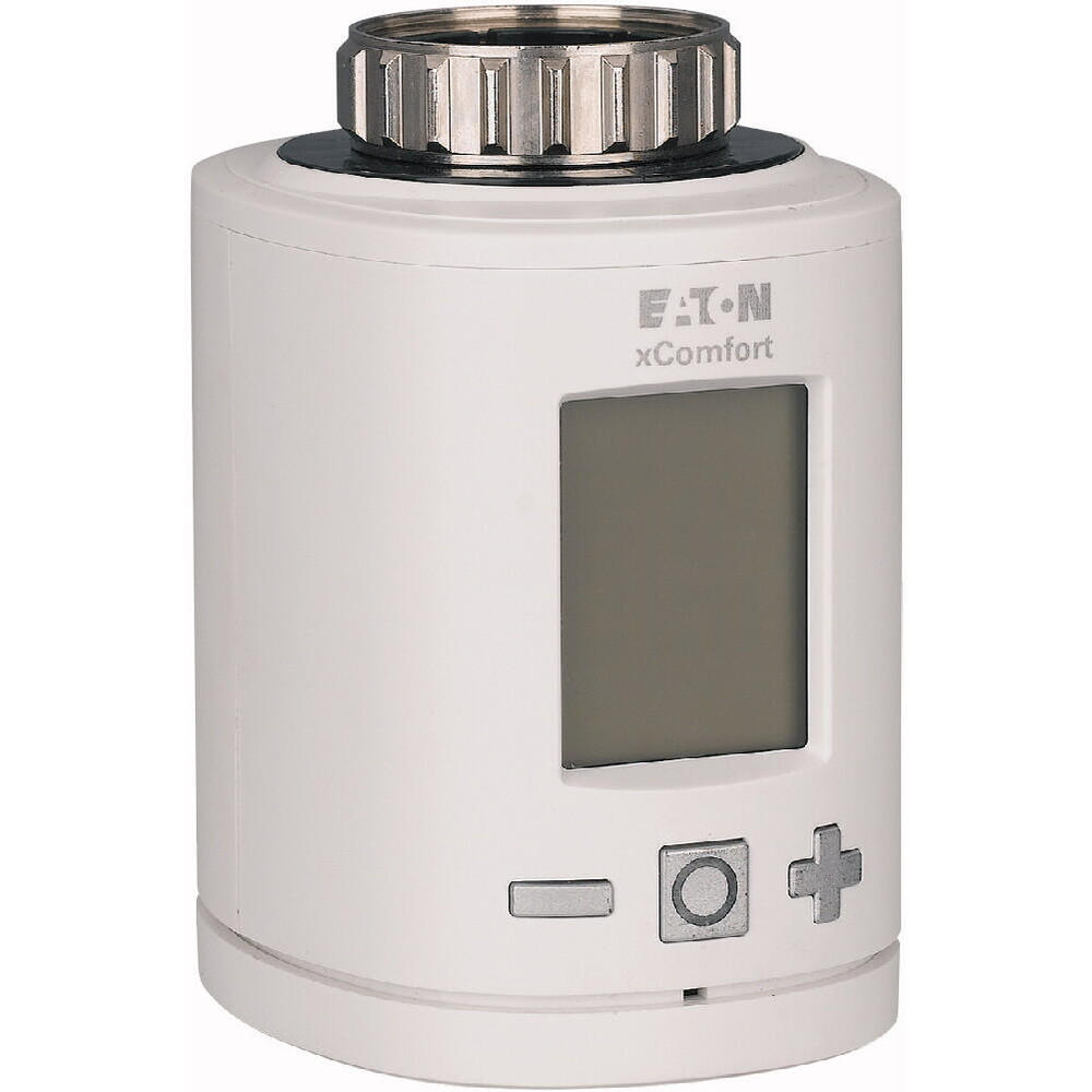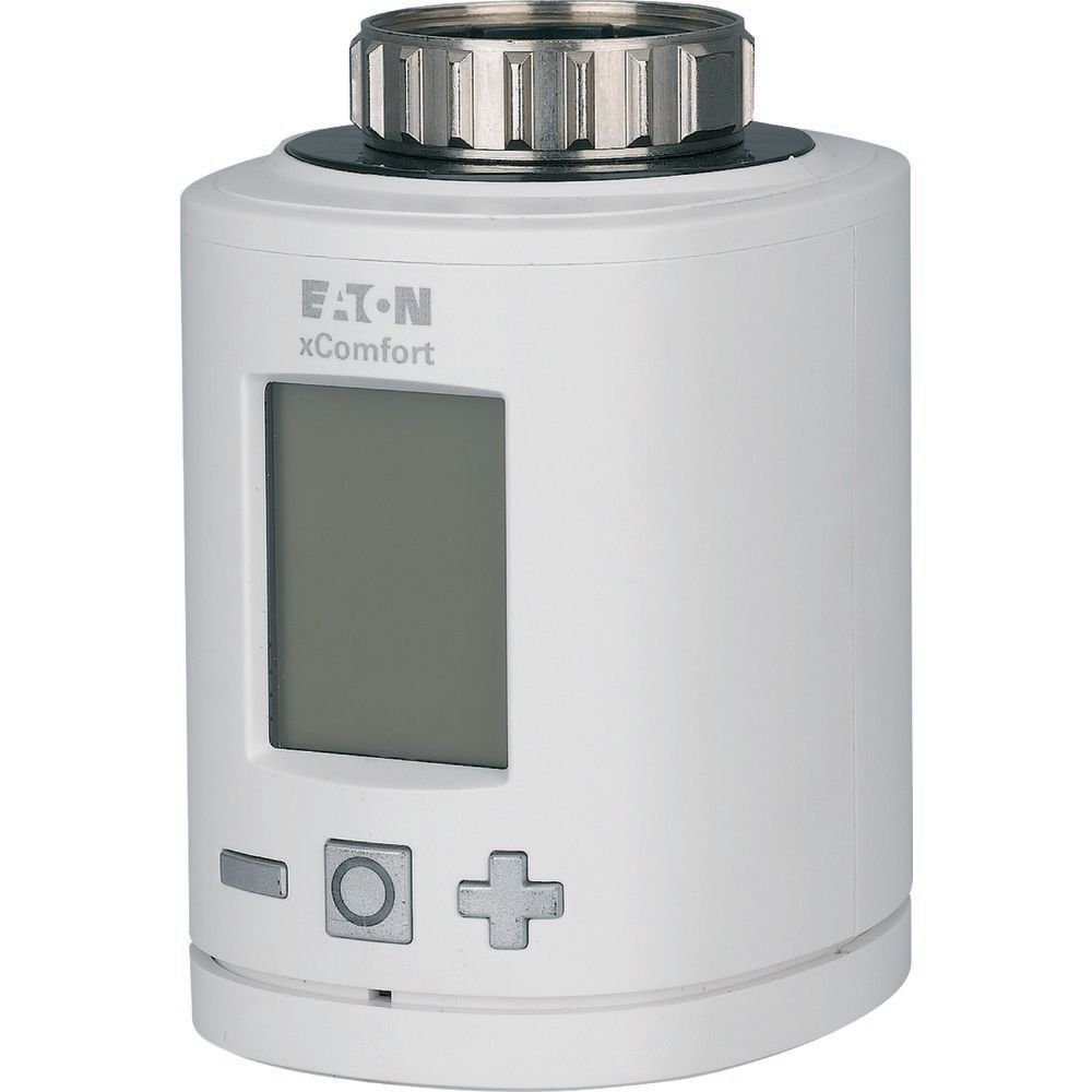 Der Eaton Industries XComfort ist ein Heizkörperthermostat, der für die automatische Steuerung von wasserbasierten Heizkörpern entwickelt wurde und mit RF- und Powerline-Bussystemen kompatibel ist. Es vereint die Vorteile des Ventilschutzes, der stufenlosen Einstellung und der manuellen Umschaltung. Das Gerät wird mit Batteriestrom betrieben und kann entweder eigenständig oder in Synergie mit der SHC-Klima-Funktion für eine effiziente zonenbasierte Klimaregelung arbeiten. Das macht sie nicht nur ideal für die Energieeinsparung, sondern erhöht auch den Komfort. Der Thermostat verfügt über ein großes beleuchtetes Display mit einfach zu bedienenden Tasten und eine Kindersicherung für zusätzliche Sicherheit. Darüber hinaus bietet er eine problemlose Montage und ist mit verschiedenen Adaptern ausgestattet, um verschiedene Arten von Heizkörpern unterschiedlicher Marken aufzunehmen. Seine Schutzart ist IP20.