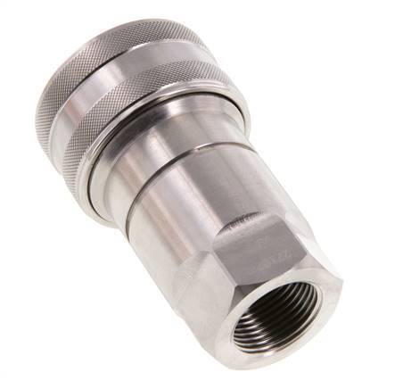 Hydraulische Kupplungsmuffe DN 20 aus Edelstahl mit G 3/4 Zoll Innengewinde. Der maximale Betriebsdruck beträgt 250 bar (3625 psi). Die Kupplung ist für Temperaturen von -25 bis 200 °C (-13 bis 392 °F) geeignet. Der Dichtungswerkstoff ist FKM. Die Kupplung entspricht der ISO 7241-1 B.