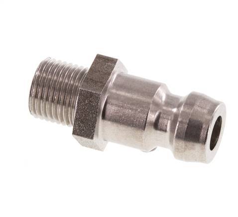 Kupplungsstecker aus Edelstahl DN 6 mit Außengewinde M8x0,75. Sie werden in der Regel für Flüssigkeitsleitungen verwendet, um sichere Verbindungen schnell zu verbinden und zu trennen.