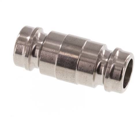Kupplungsstecker aus Edelstahl DN 9. Der Außendurchmesser des Stopfens beträgt 13 mm. Sie werden in der Regel für Flüssigkeitsleitungen verwendet, um sichere Verbindungen schnell zu verbinden und zu trennen.