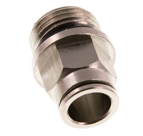 - Diese Steckverschraubung hat einen Außensechskant zur Befestigung