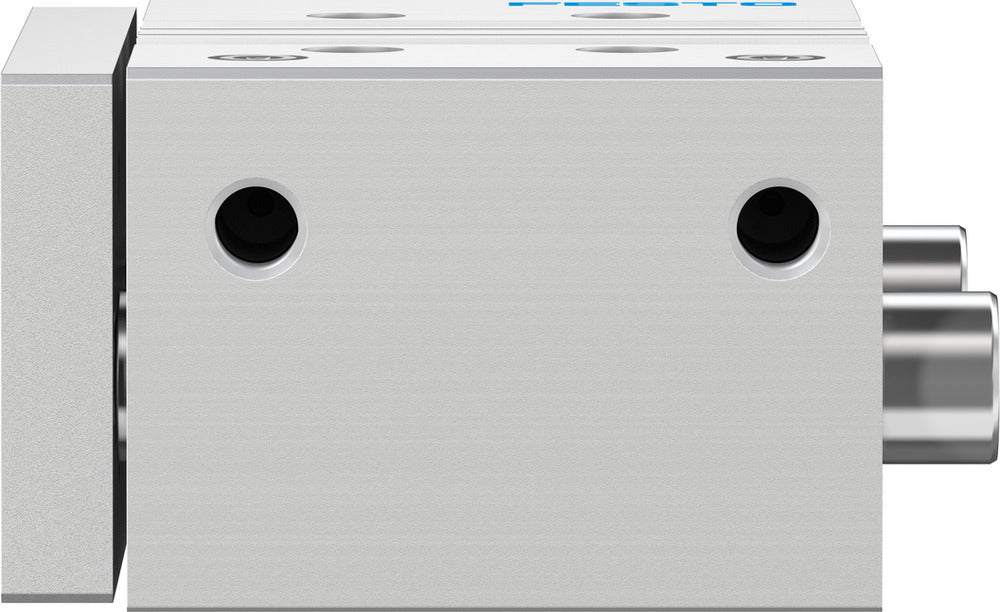 Der DFM Führungszylinder kombiniert eine Gleiführung und einen doppelt wirkenden Zylinder in einer kompakten Bauform. Mit einem Durchmesser von 63 mm und einem Hub von 50 mm liefert er 1870 N Kraft bei 6 bar. Die Einheit verfügt über elastische Dämpfung an beiden Enden und ist kompatibel mit Näherungssensoren zur Positionsbestimmung. Seine robuste Konstruktion und präzise Führung machen ihn geeignet für Anwendungen, die hohe Widerstandsfähigkeit gegen Momente und seitliche Kräfte erfordern, wie z.B. Klemmen, Heben und Stoppen.