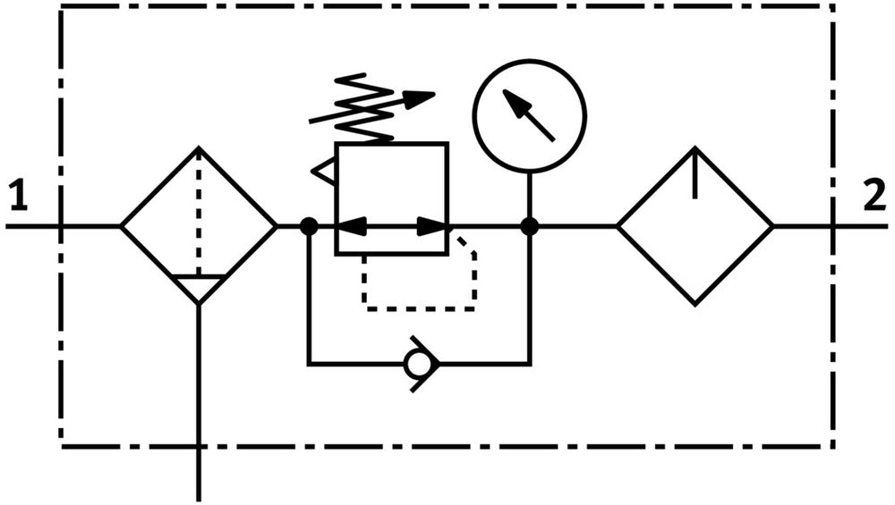 Diese Wartungsgeräte-Kombination bietet eine effiziente Behandlung von Druckluft für industrielle Anwendungen. Mit einem G1/2 pneumatischen Anschluss und einer standardmäßigen Nenn-Durchflussrate von 3600 l/min bietet sie robuste Leistung. Die Einheit verfügt über einen Druckregelbereich von 0,5 - 12 bar und eine Filtrationsstufe von 5 µm, die eine saubere und richtig druckbeaufschlagte Luftversorgung gewährleistet. Ihr kompaktes Design mit einer Breite von 62 mm integriert einen Filterregler mit Manometer und proportionalem Standard-Ölnebel-Schmiergerät, was sie für verschiedene pneumatische Systeme geeignet macht, bei denen Raumeffizienz entscheidend ist.