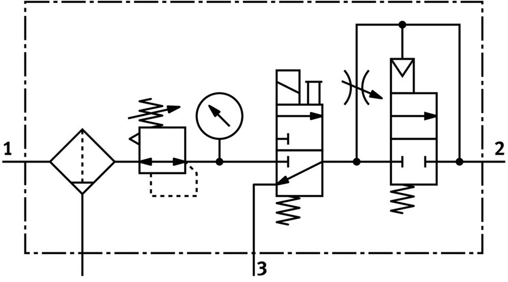 Diese Wartungseinheit kombiniert essentielle pneumatische Komponenten in einem kompakten Paket. Sie verfügt über einen G1/8 pneumatischen Anschluss und liefert eine standardmäßige Nenn-Durchflussrate von 595 l/min. Die Einheit bietet eine Druckregelung von 2,5 bis 12 bar, mit einer Filtrationsstufe von 40 µm. Entwickelt für technische Anwendungen, integriert sie ein Absperrventil, einen Filterregler mit Manometer, einen proportionalen Standard-Ölnebel-Schmierstoff und ein Sicherheitseinschaltventil. Diese umfassende Lösung sorgt für eine effiziente und zuverlässige Luftverarbeitung für pneumatische Systeme.