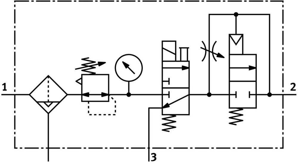 Diese Wartungseinheit kombiniert wesentliche Komponenten für pneumatische Systeme, einschließlich eines Absperrventils, Filterregler mit Manometer, proportionalem Standardölnebel-Schmiergerät und Sicherheitseinschaltventil. Mit einem G3/8 pneumatischen Anschluss und einer standardmäßigen Nenn-Durchflussrate von 1890 l/min bietet sie effizientes Luftmanagement. Die Einheit verfügt über einen Druckregelbereich von 2.5 - 12 bar und eine Filtrationsstufe von 40 µm, die zuverlässige Leistung und Schutz für nachgeschaltete Geräte in industriellen pneumatischen Anwendungen gewährleistet.