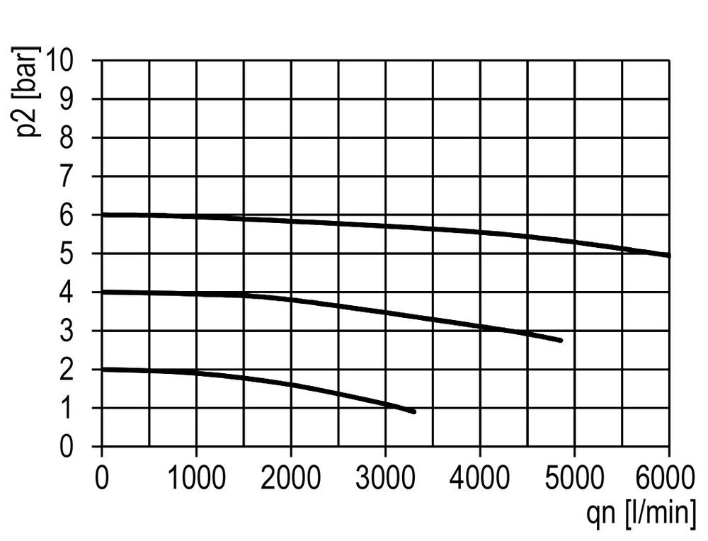 Der Filter entfernt Wasser, Schmutz und andere schädliche Partikel, die größer als 5 Mikrometer sind. Der Filter entfernt Wasser, Schmutz und andere schädliche Partikel für Ihr Luftsystem. Dieses Modell hat G 3/4-Zoll-Anschlüsse. Die maximale Durchflussmenge beträgt 5850 l/min. Bitte beachten Sie, dass die maximale Durchflussmenge allein nicht ausreicht, um die richtige Dimensionierung vorzunehmen. Verwenden Sie die Durchflusskurve, um festzustellen, ob der Druckabfall innerhalb Ihres erwarteten Durchflussbereichs akzeptabel ist. Die Durchflusskurve zeigt die Durchflussmenge für einen bestimmten Eingangsdruck bei verschiedenen Ausgangsdrücken. Für jeden Ausgangsdruck ist ersichtlich, wie sich der Druck mit zunehmender Durchflussmenge verändert. Es wird empfohlen, das Gerät im flachen Bereich der Kurve zu verwenden und nicht am Anfang oder am Ende der Kurve.