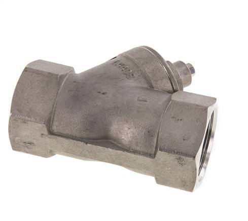 Edelstahl Y-Filter mit G 1 1/4" Innengewinde und einem Edelstahlfilter mit einer Maschenweite von 0,8 mm. Für Medien bis zu 40 bar (580 psi) bei Temperaturen zwischen -20 °C und 200 °C (-4 bis 392 °F). Zur Verwendung in einer einzigen Durchflussrichtung (siehe Pfeil auf dem Gehäuse). Die Rückstände sammeln sich im Filter und können durch Abschrauben der Dichtkappe gereinigt werden.