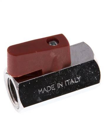 2-Wege-Mini-Kugelhahn aus vernickeltem Messing mit G 1/4-Zoll-Innengewindeanschlüssen. Der Gewindetyp ist BSPP (British Standard Pipe Parallel). Mit unserem Sortiment an 1/4-Zoll-Fittings kann das Ventil in jedes Rohr eingebaut werden. Der Nenndurchmesser der Bohrung beträgt 8 mm. Die Mini-Kugelhähne sind sehr kompakt. Dadurch eignen sie sich gut für Anwendungen mit wenig Einbauraum oder für Systeme, bei denen ein geringes Gewicht erwünscht ist.