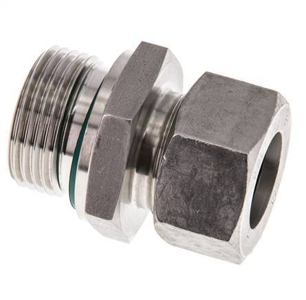 Diese gerade Einschraubverbindung aus Edelstahl ist mit Außengewinde und Schneidringverschraubung ausgeführt. Anschluss 1 hat ein Außengewinde G 1 Zoll. Anschluss 2 ist ein 22 mm Schneidring. Die Dichtung ist aus FKM / PTFE. Geeignet für Temperaturen von -20 °C bis 200 °C (-4 °F bis 392 °F). Maximaler Druck von 160 bar (2321 psi). Ausgelegt für eine Lastklasse L (leicht). Es wird nach der DIN EN ISO 8434-1 (DIN 2353) hergestellt.