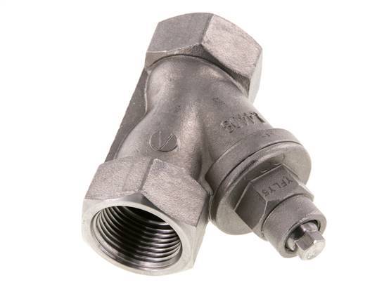 Edelstahl Y-Filter mit G 3/4" Innengewinde und einem Edelstahlfilter mit einer Maschenweite von 0,8 mm. Für Medien bis zu 40 bar (580 psi) bei Temperaturen zwischen -20 °C und 200 °C (-4 bis 392 °F). Zur Verwendung in einer einzigen Durchflussrichtung (siehe Pfeil auf dem Gehäuse). Die Rückstände sammeln sich im Filter und können durch Abschrauben der Dichtkappe gereinigt werden.