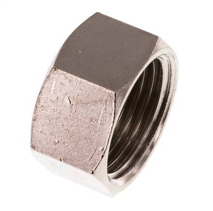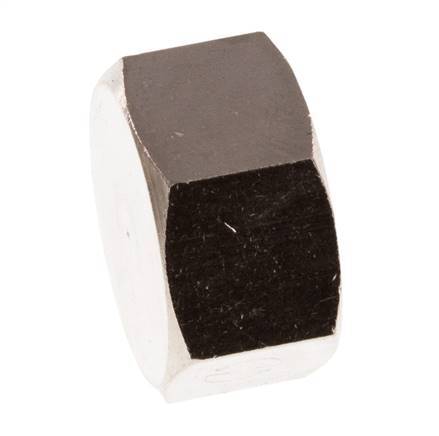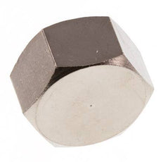 Diese Endkappe ist mit einem Innengewindeanschluss ausgestattet. Anschluss 1 hat ein Innengewinde G 3/8 Zoll. Es handelt sich um eine Endkappe, die also keinen Ausgangsanschluss hat. Er ist aus Messing gefertigt und zum Schutz der Oberfläche vernickelt. Bei 20 °C (68 °F) kann es einen maximalen Druck von 16 bar (232 psi) bewältigen.