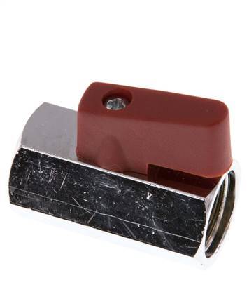 2-Wege-Mini-Kugelhahn aus vernickeltem Messing mit G 3/8 Zoll Innengewindeanschlüssen. Der Gewindetyp ist BSPP (British Standard Pipe Parallel). Mit unserem Sortiment an 3/8-Zoll-Fittings kann das Ventil in jedes Rohr eingebaut werden. Der Nenndurchmesser der Bohrung beträgt 8 mm. Die Mini-Kugelhähne sind sehr kompakt. Dadurch eignen sie sich gut für Anwendungen mit wenig Einbauraum oder für Systeme, bei denen ein geringes Gewicht erwünscht ist.