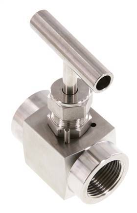 Sehr kompaktes Nadelventil aus rostfreiem Stahl mit G 1"-Gewinde. Dieses Ventil kann als zuverlässiges Absperrventil oder zur präzisen Regelung von (relativ geringen) Durchflussmengen von reinen Gasen oder Flüssigkeiten verwendet werden. Das Ventil hat einen inneren Nenndurchmesser von 9,5 mm. Die Dichtungen sind aus PTFE gefertigt. Der maximale Druck beträgt 300 bar und der zulässige Temperaturbereich liegt zwischen -20 und max. 200°C. Dank der hochwertigen Materialien und der robusten Konstruktion ist das Ventil für hohe Drücke und aggressive Flüssigkeiten geeignet.