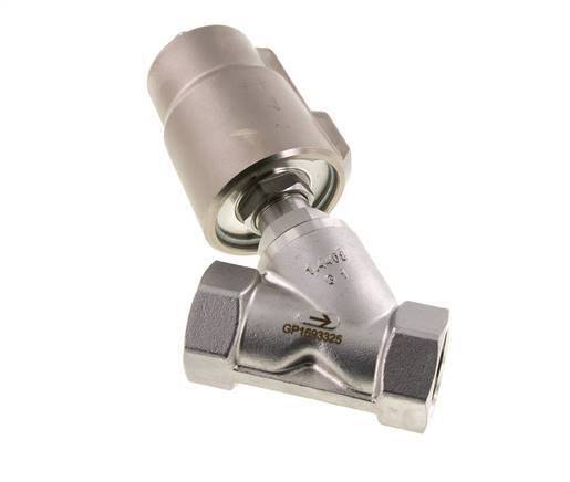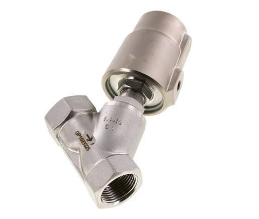 Dieses stromlos geschlossene G 1"-Schrägsitz-Kolbenventil aus Edelstahl bietet eine zuverlässige Absperrsteuerung für Gase und Flüssigkeiten. Die Sitz- und Spindeldichtung besteht aus PTFE. Geeignet von 0 bis 16 bar und Temperaturen von -40 bis 200°C. Das Ventil arbeitet mit Druckluft von vorzugsweise 6 bar. Hervorragender Durchfluss dank des Y-förmigen Designs. Tipp: Wählen Sie für schnelle Flüssigkeitsströme "gegen den Strom schließende" Ventile, um Wasserschläge zu vermeiden.