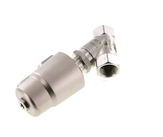 Dieses stromlos offene G 3/4"-Schrägsitz-Kolbenventil bietet eine zuverlässige Absperrsteuerung für Gase und Flüssigkeiten. Das Hauptventilgehäuse ist aus rostfreiem Stahl mit einer Sitz- und Spindeldichtung aus PTFE gefertigt. Geeignet für Medien von 0 bis 20 bar und Temperaturen von -20 bis 200°C. Das Ventil arbeitet mit Druckluft von vorzugsweise 6 bar (min. 4, max. 10), zur Steuerung der Luftzufuhr ist ein pneumatisches 3/2-Ventil erforderlich. Hervorragender Durchfluss dank des Y-förmigen Designs. Tipp: Für schnelle Flüssigkeitsströme wählen Sie bitte "gegen den Strom schließende" Ventile, um die Gefahr von Wasserschlägen zu vermeiden.